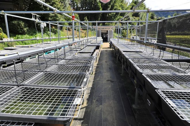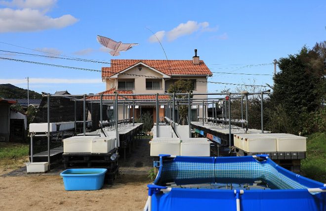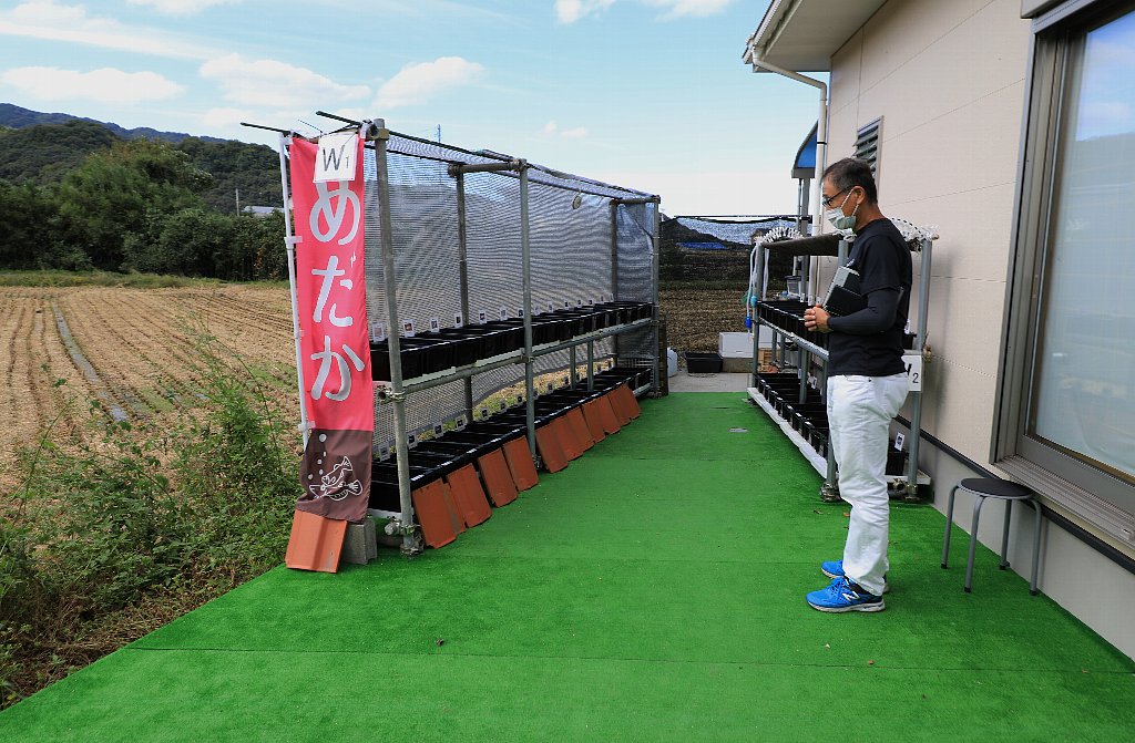 伊予の三湯のひとつ・鈍川温泉(愛媛県今治市)にある「鈍川めだか水族館」。今春オープンした県下でも数少ないアクアスポットのひとつですが、立ち上げから携わってきたのがメダカの飼育・販売を行う塚本修平さんです。県下にはショップを始めとするアクアスポットが少ない伊予の国。塚本さんがどのような環境でメダカを飼育しているのか、興味はつきません。本格的な冬の到来を前に、飼育場を訪ねてみました。