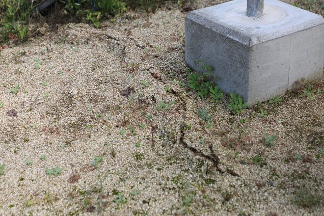 ふと足元を見ると、地割れのような跡が。これは日本沈没か!と思いきや、モグラが通った跡でした。