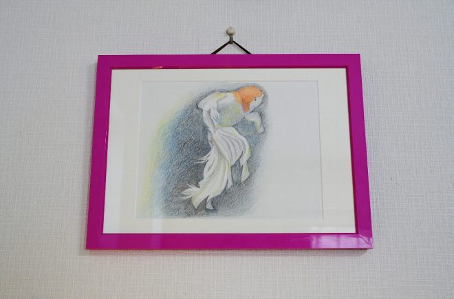 ちなみにこの絵は幸さん作。絵に残したいほど、思い入れが強かった金魚だったことがよくわかります。「うちにくる生きものはみんなわが子だと思っていますが、オコウだけは特別な存在でした」と当時を振り返ります。