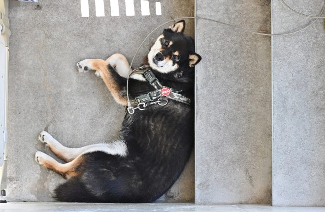 もう1匹は黒柴のまめすけ。ルカとは10才も年下で、男の子同士のせいか以前はやたら仲が悪かったそうです。なので、飼育エリアはセパレートに。少しずつ慣れてきたせいなのでしょうか、最近はあまりケンカもしなくなったそう。まめすけ、大人になったのね~(笑)。