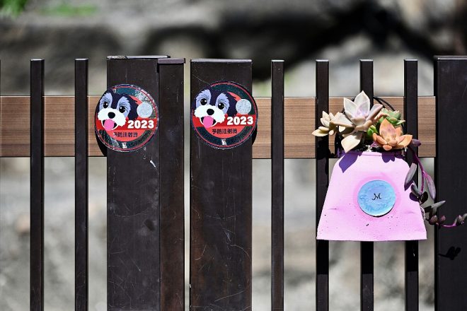 JR和歌山線・津久野駅から歩いて5分。戸建て住宅が立ち並ぶ閑静なまちなみの一角に訪問。扉には、2匹のワンちゃんの予防接種が終わったことを示すシールが。昔のように「犬」と一文字だけ書かれた愛想のない時代とくらべて、ずいぶんアカ抜けしたものですね。