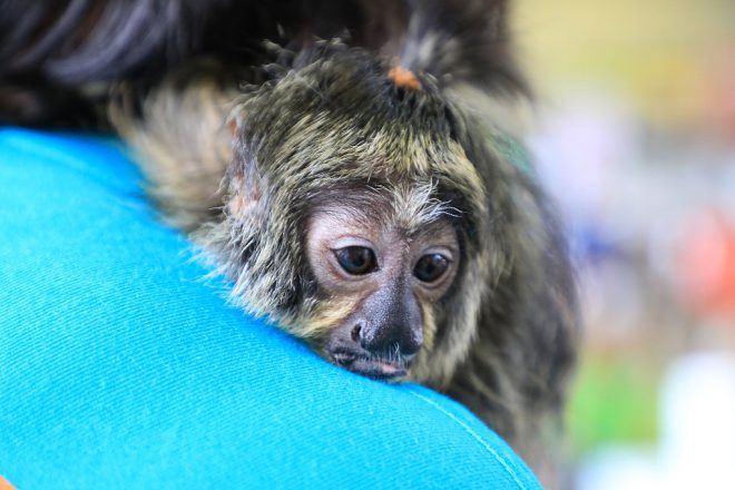 ん?この子は?まさか息子さん(笑)?オーナーの奥様の肩にちょこっと乗ったシロガオサキの子どもだそう。大人になると、顔が真っ白になるそうな。