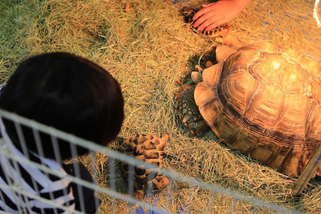 小野さん一家に限らず、日曜日は親子連れが多かった気がしました。「どちらかといえば土曜日は生体購入が目的の来場者が中心で、日曜日は家族連れが多いみたいですよ」とKOTOBUKIスタッフ。そうですね、日曜日はちょっとしたミニ動物園の雰囲気がありました。2日間のみのイベントですが、それぞれの目的がハッキリしている傾向にありそうです。