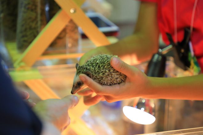 やっぱり一番の人気はハリネズミ。3年ほど前にブレイクし、フクロモモンガなどと同様に小動物を代表する人気者にのし上がりました。FacebookやツイッターなどのSNSでも、本イベントではハリネズミの写真をアップしているユーザーが一番多かった気がします。「ナゴレプのハリネズミは質がいい」と、SNSでも評判でした。