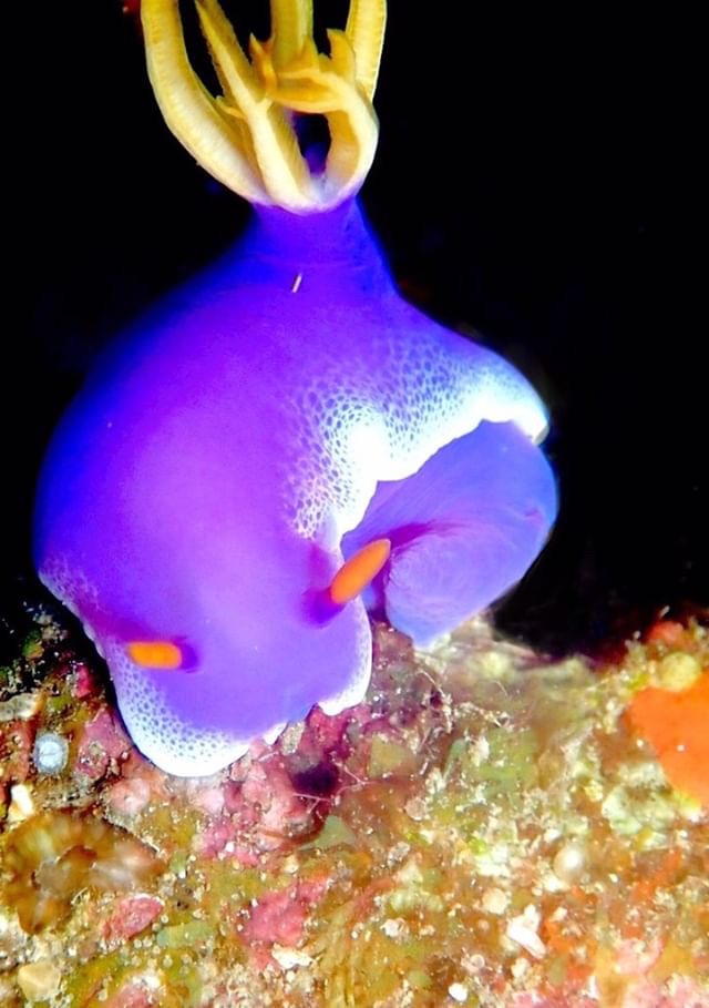 これもまるで、エイリアンっちゃーエイリアン(笑)。1年でここまで成長して、この時期タマゴを生んだらそれで一生が終わるという、あまりにも切ない人生を送っているアメフラシ。最大で35㎝という記録があるらしく、海藻をエサにしているので海藻の近くで見つけることができます。