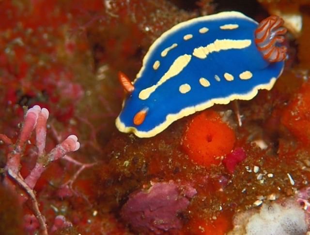 まずアオウミウシ。ウミウシといえば、このウミウシ。まさにウシのような触覚がかわいいですね。磯でもよく見られるほど、定番になりました。本州ではよく見られますが、沖縄にはほとんどいないのだそう。
