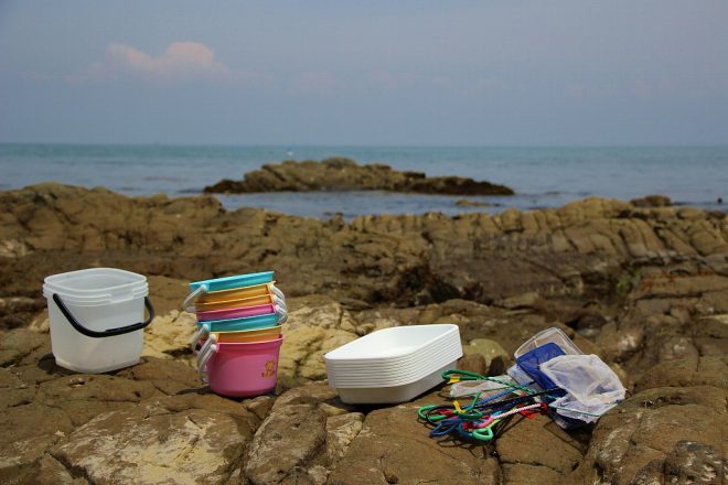 観察会のために用意された各種ミニバケツなどなど。これらのツールは決して生きものを持ち帰るための道具ではありません。目的はあくまで観察用です。