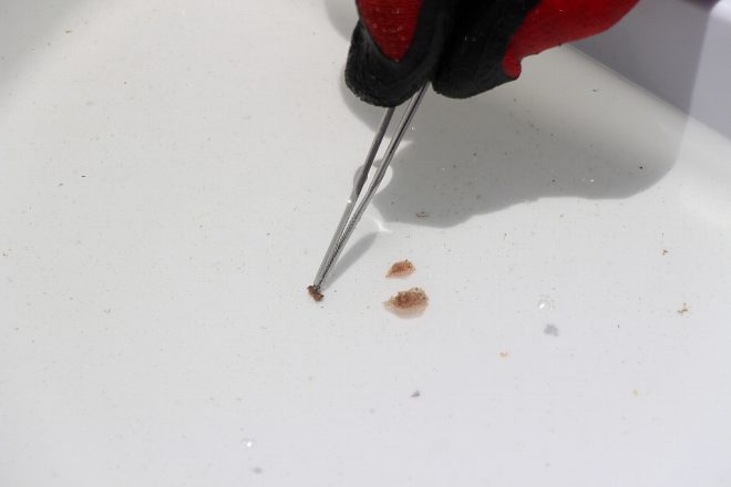 バケツやトレイだけでなく、こんなスポイドも役に立ちます。なるほど、ウミウシというとすべてが2~3㎝の体長と思われがちですが、実際にはスポイドでないとキャッチできないサイズもあるということですよね。