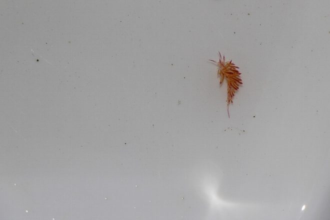 わずか1㎝にも満たないミニマムサイズ。やっぱりペーターさんのように経験豊富な専門家でないとなかなか。ちなみに今回の観察会で最も多くウミウシをみつけたのはペーターさんでした。さすがリーダー、目のつけどころがウミウシです(謎♪)