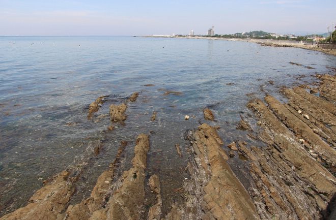 この海岸線は、正確にいうと「長松自然海浜保全地区」。南北にわたって約850mの海外線が広がっています。大阪府の中では数少ない自然のままの状態で現存している海辺で、数多くの種類の生きものたちも生息しています。それにしても、こんな規模で磯が残っているところがあるなんて、大阪府に長年住んでいながら知りませんでした。