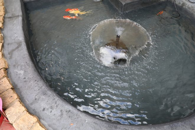 では早速店内へ。と、その前に。玄関の片隅に何げに鯉が3匹。ゆくゆくはもっと手を入れて、ちょっとした池に設えるのだとか。完成したら、こんな和の世界もさらに北山通りにマッチすることでしょう。