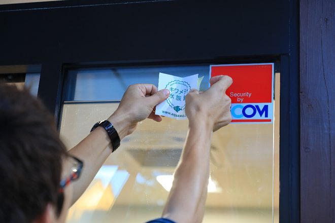 ん?何やら作業中のアクアマネージャーの川村卓矢さん。セコムの横にはおお~~~!え、ええんですか?そんなことして(笑)!