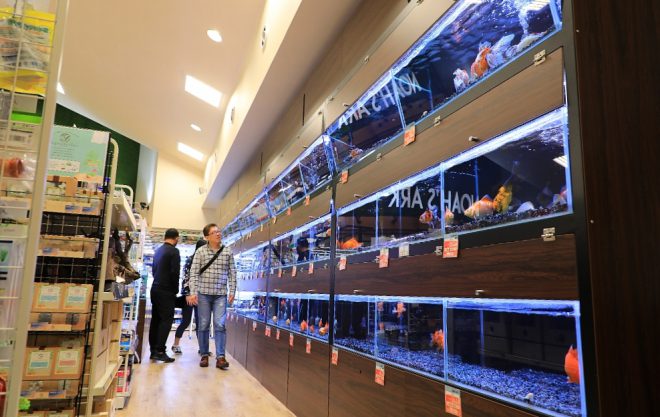 この日は、オープニング記念のイベントも色々と。特に、金魚の仕入れでは欠かせないやまと錦魚園さん(奈良県大和郡山市)の応援により、金魚即売会も実施。ノアズアーク門真大橋店ではすっかり定番イベントとなっていますが、「お店の金魚とはできるだけかぶらないように、かつ養魚場らしい生体を選んで持ってきました」(同園・西脇高広さん)。