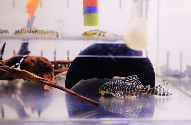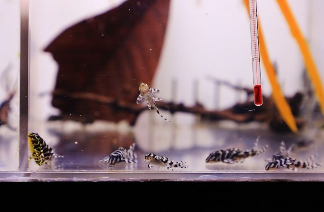 でも野本さんの場合は違っていました。どちらかというと、小型のプレコに魅力を感じて飼育するようになりました。「白と黒の模様を見た時、何か面白いな~と思って」とシンプルな回答(笑)。これまで出雲ナンキンやライヤープラティを苦労して飼育してきた野本さん、プレコに関しては理屈なく直感的なラブを感じた結果なのかも知れません。