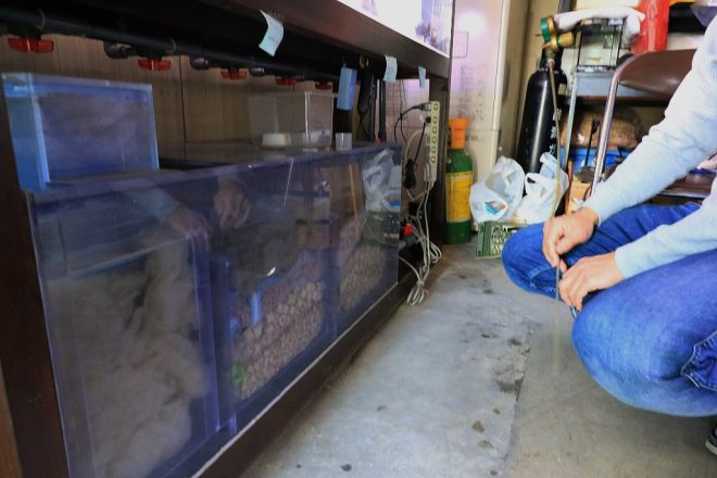 稚魚の育成にはミネラル分が必要。「純度の高い水が飼育にもいいとは限らないんです」
