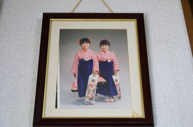 七五三でしょうか、小さいころに撮った年子の妹さん(右)との記念写真。
