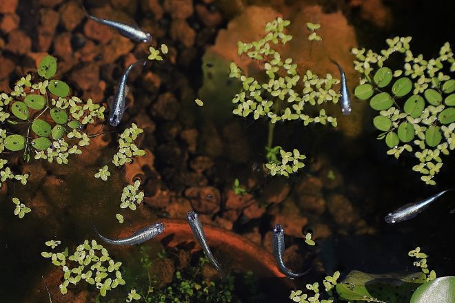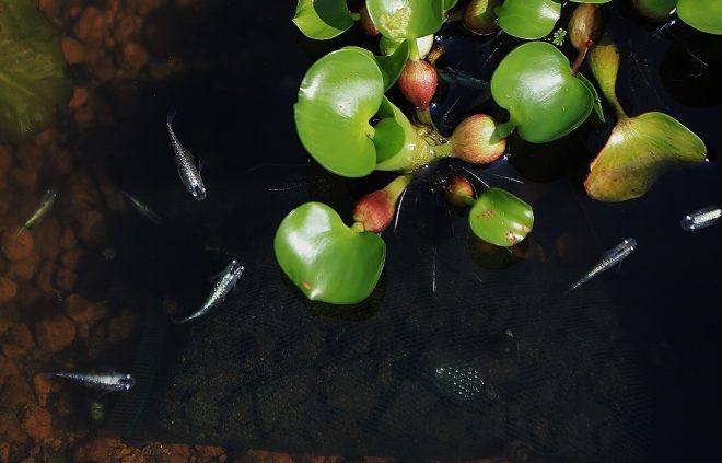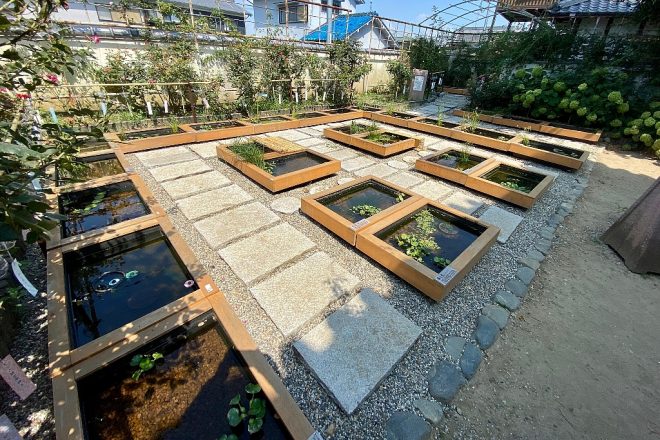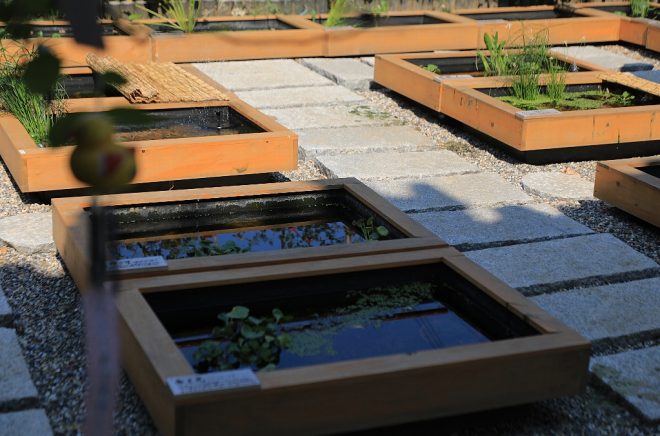 ちなみに、どの容器にもヤゴ対策の一環としてドジョウが投入されているとのこと。天敵から身を守るために、こんな工夫もされています。
