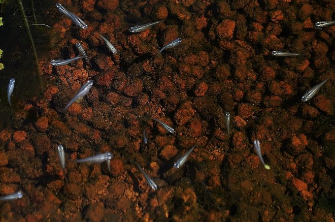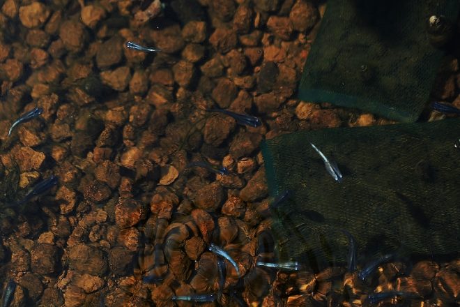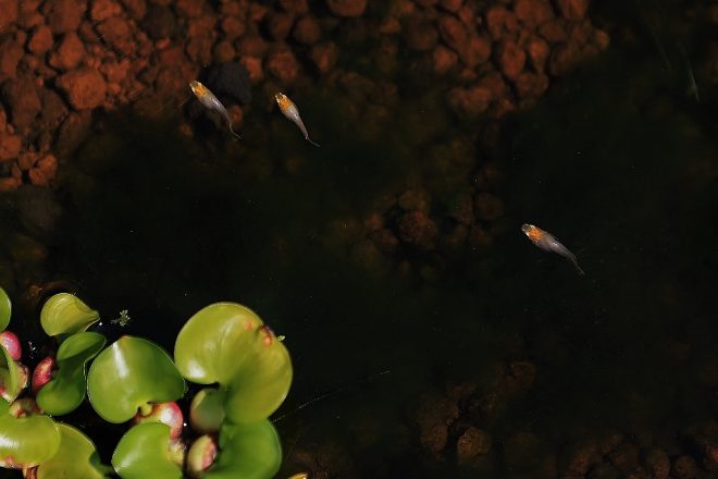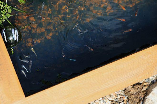 広々としたスペースに開校したメダカの学校。おふさ観音に、またひとつ風物詩が加わりました。