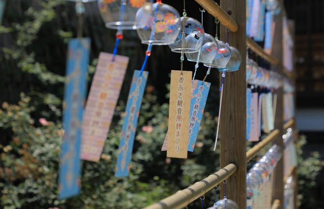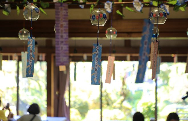 風鈴まつりは2003年からスタート。昔から行われていた夏の厄払いの一環でした。冷たいものを食べすぎておなかを壊したり、熱中症対策のためとはいえエアコンの効き過ぎで体長を壊したり。そんなことがないよう祈って、現代風にアレンジしたのが風鈴まつりの最初でした。チリンチリンの大合唱でコロナウイルスも撃退できればいいのですが。