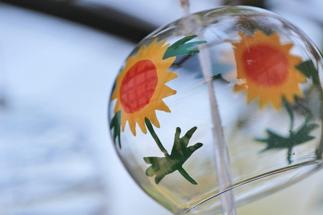 よくみると、色々な種類の風鈴が目を引きます。夏といえばやっぱりひまわりですよね。