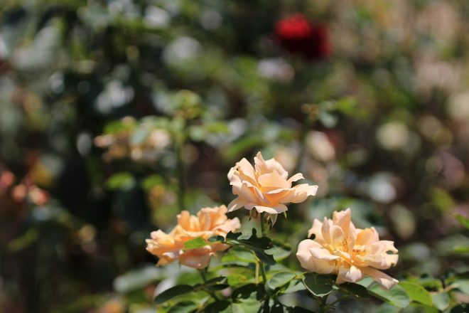 全部で3,800種類のバラが境内に。1995年からバラまつりが開催されています。春の見頃は5月から6月にかけてですが、10月から11月にかけては秋のバラまつりも行われる予定です。