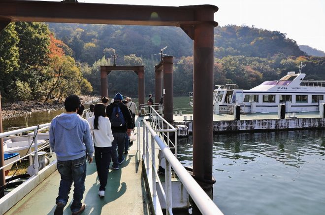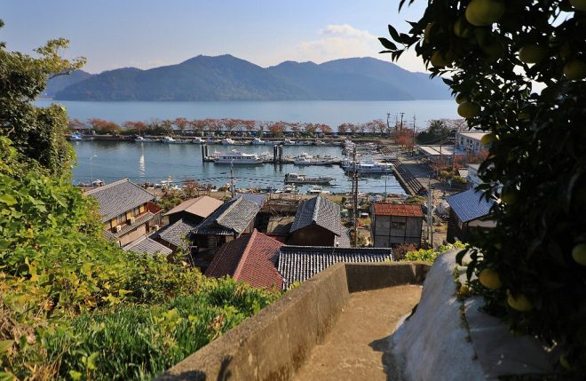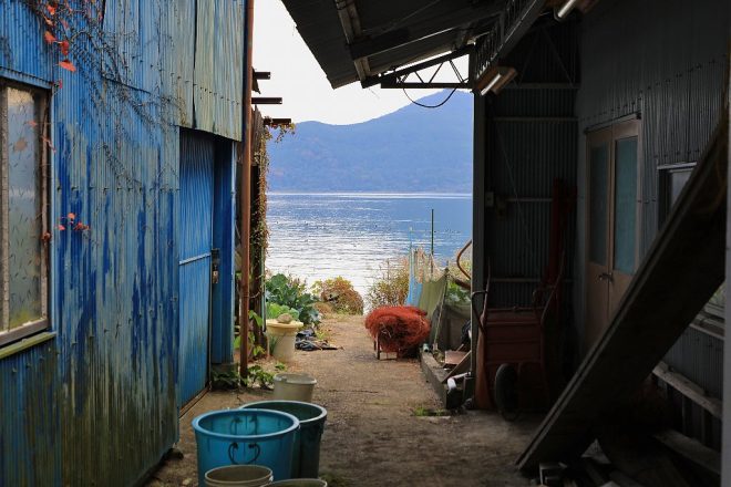 沖島へは約10分の船旅。船はやがて港へ。風光明媚な水のある風景。建ち並ぶ民家と漁船をぼんやり眺めていると、ついつい淡水湖にいることを忘れてしまいそうになります。