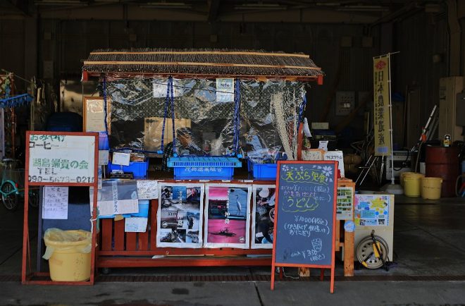 港の目の前にある沖島漁業会館では、地元の人たちによるお土産や定食の販売も。もちろんすべて地元の人たちによる手づくり。自分たちが一番美味しいと思う方法で料理しているのだそう。この日は、お土産にも人気の「えび豆若煮」を購入。白ごはんとの相性はもちろん、意外にカレーにも合ったのでびっくり。あっという間になくなってしまいました(笑)。沖島のお土産として、ぜひこれがおすすめです。