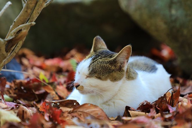 再び港まで戻ってきました。ん?ネコちゃんがのんびりお昼寝中。