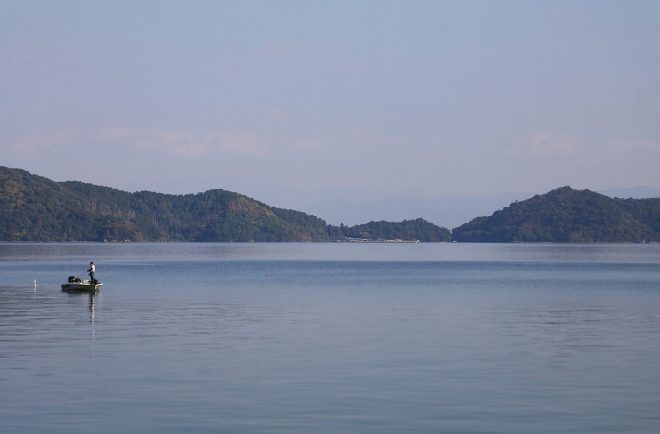 沖ではのんびりブラックバスを釣っている人たちも。そういえば、今回はびわ湖の魚にありつけなかったことだけが悔いが残りました。
