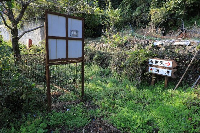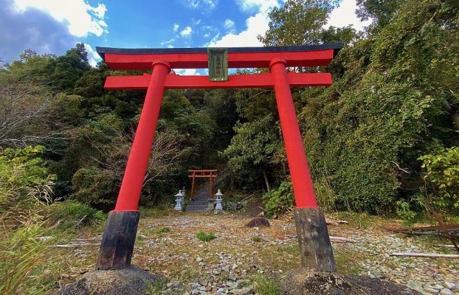 港から20分ほど歩いたでしょうか、お目当ての朱色の鳥居に到着しました。弁財天といわれ、雨乞いの神様なのだそうです。