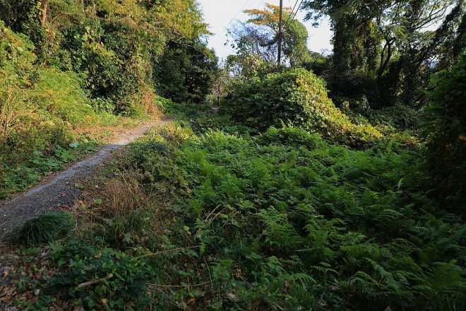 少しずつ民家が減っていき、道はどんどん探検っぽいシチュエーションに。シダの葉も印象的です。