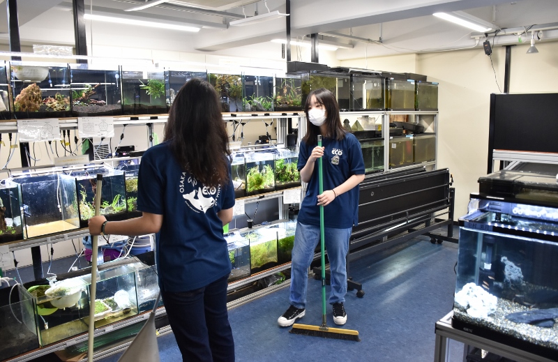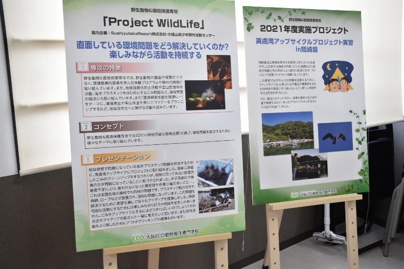 エコ水は、水族館・アクアリスト専攻のメンバーが自主的に活動をしていますが、環境デーのイベントということで環境問題について学ぶ機会が多い野生動物&環境保護専攻(通称・野生)の生徒と合同で行うことになりました!