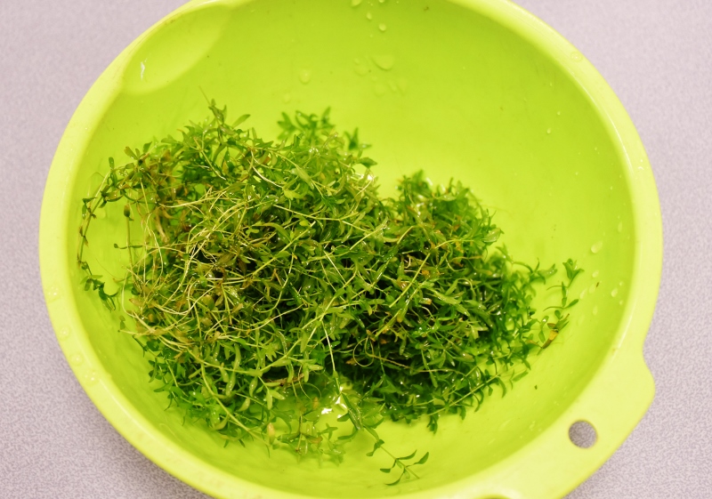 それにしてもトリミング後の水草とはいえ、よく残しておいたものです。超超超真剣、そして慎重に水を切ります。
