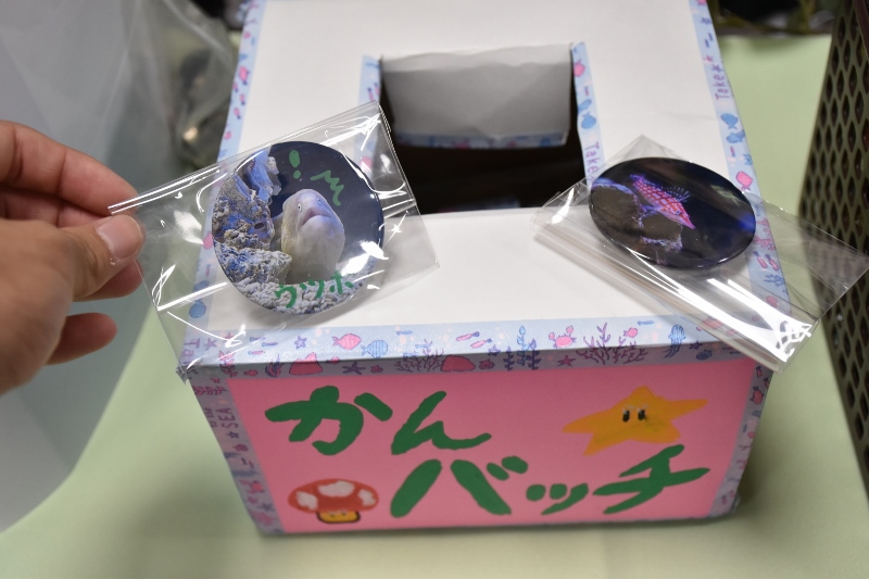最後はエコ水で飼育している生きものたちの写真を使ったオリジナル缶バッチと飴ちゃんをプレゼント!