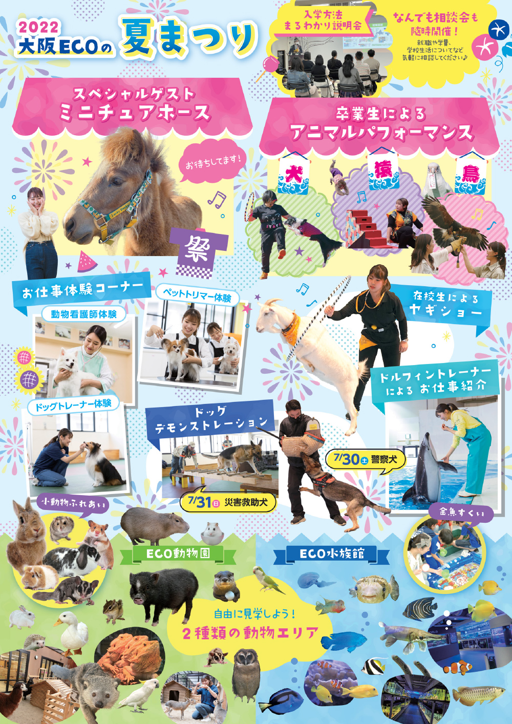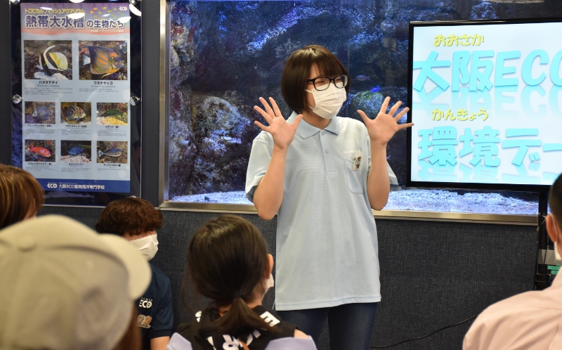 「子どもたちの未来のために環境問題を考えてみよう!」。世界環境デー2022当日となった6月5日(日)、大阪ECO動物海洋専門学校(大阪市西区)では、恒例のECO水族館(通称・エコ水)が開催されました。このイベントは水族館・アクアリスト専攻の学生が企画運営しているもので、学校周辺に住む地域の子どもたちや家族の間でもすっかり定着した人気イベント。今回は、どーしてもどーしても記事を書かせてください!という学生からの異例の申し出があり、キワメテ編集部はシブシブ受諾(笑)。ところがおっとどっこい、案ずるは産むが易し。気合の入った力作となりました。