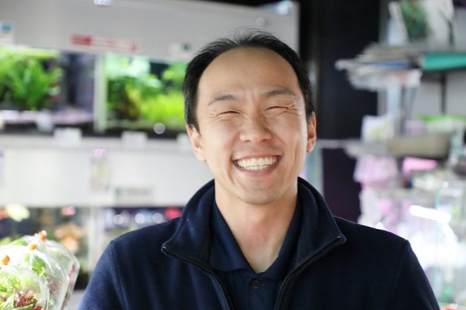 お店のモットーは、「決してNOと言わないこと。どんな時でも最善を尽くせ、とスタッフには言っています。もしお客さんの希望する商品がなくても、可能な限り代替案を出すようにもしています」。さすがです。淡水魚から海水魚まで、小さな水槽から大型水槽まで、そしてアクリル水槽からガラス水槽まで、どの用品をみてもニーズに対応できる品揃えを保っているのも、そういう理由からだったんです。