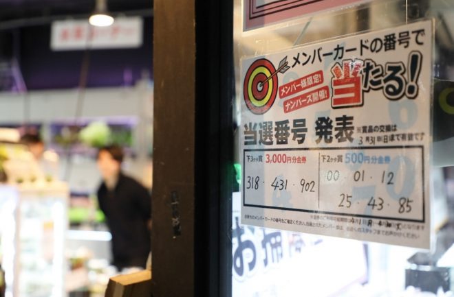 メンバーカード所有者を対象にしたキャンペーンの発表コーナー。こうしたイベントもきめ細かく開催して、お客さんの心をつかんで離しません。このほか金魚すくいは毎月の恒例行事になりました。ゴールデンウィークや夏休み期間中には、独自のセールも行っています。