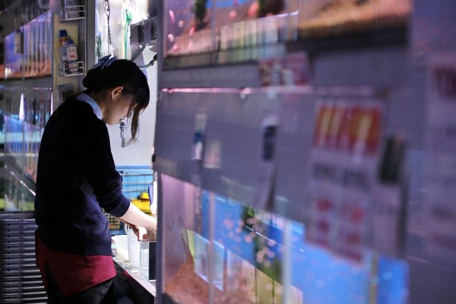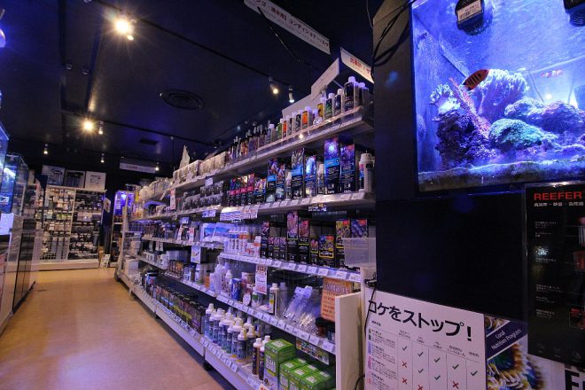 外国人観光客が立ち寄って、アクア用品を買いにくるケースも格段に増えたそうです。これもやっぱりお店が東京の中心部にあるからでしょうか。「たぶんそうでしょう。外国人観光客の中でも、中国人のかたが圧倒的に多いです」。インバウンドの好影響がこんなところにも。ということは英語が話せるスタッフがいるんですか?「いやいや、そこは気持ちと気持ちでつなげています(笑)」。このほか、日本在住の外国人が生体や水槽を買いにくるケースも少なくありません。