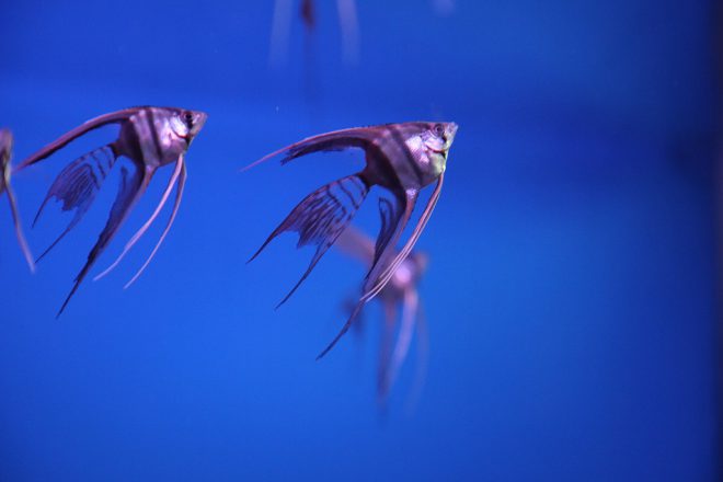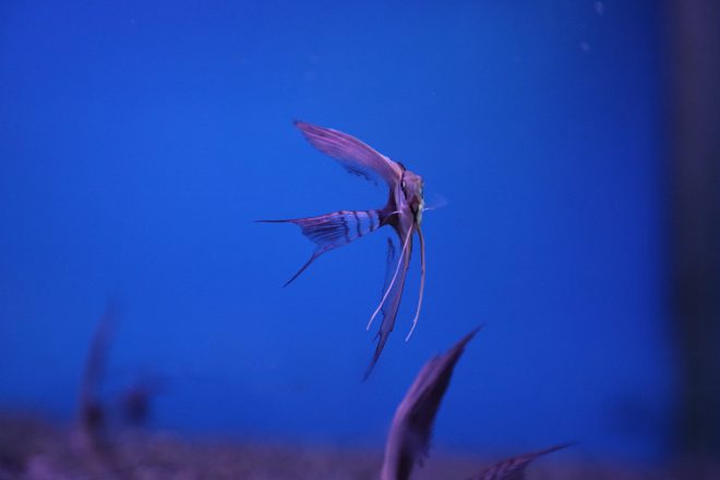 こちらは海水魚コーナー。照明がさらに落とされ、もはや神秘的でさえあります。