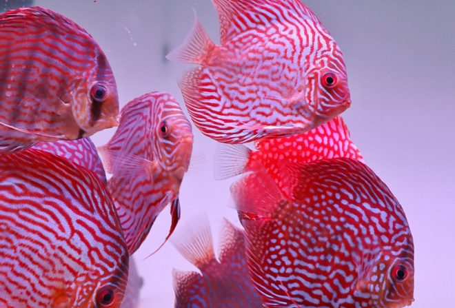 優雅に泳ぐディスカスたち。かつては「熱帯魚の王様」といわれた生体ですが、これほどきれいな水槽で飼育されているディスカス、久しぶりにみました(笑)