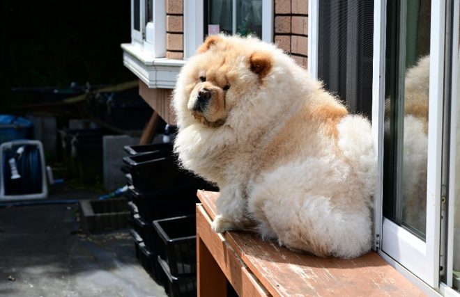 いつもは自宅で野口さんの帰りを待っているチャウチャウ犬「こまめちゃん」(女の子)。時々、第2ファームで野口さんたちの作業を見守っていることも多いのだとか。