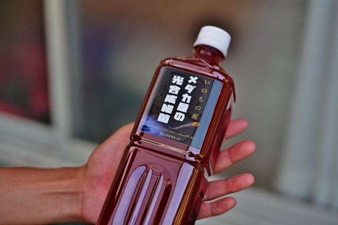 水がきれいになるだけでなく、稚魚やミジンコ、ゾウリムシのエサにもなるオリジナル商品「メダカ屋のPSB」。発売後まる3年、大阪府内のショップでも少しずつ見かけるようになりましたが、メダカ同様自然豊かなこの地でつくられています。