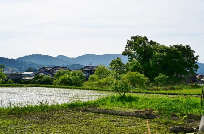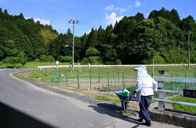 自宅から車で南へ15分。このあたりは、住宅地中心だった野口さんの自宅周辺と景色が一変。民家の周りに田畑が広がっています。
