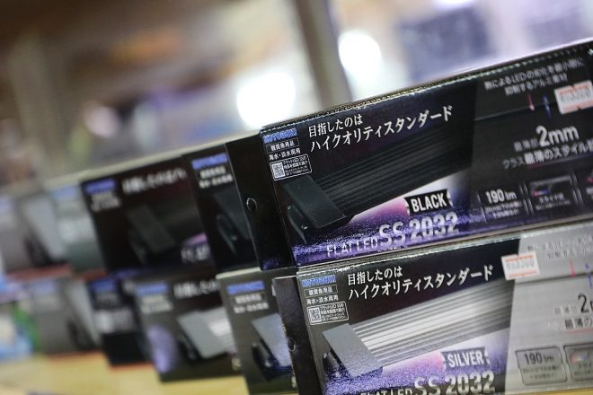 「どんな照明がいいか初心者のお客様によく聞かれることがありますが、そんな時はこれをおすすめしています。価格はもちろん、LEDの明るさや厚さ2㎜というコンパクト性もセールスポイントです」。加えて、サイズのバリエーションに幅ができたことも選びやすさが増したとのこと。特に、全5サイズのうち30㎝サイズ水槽に対応するHL3042、40㎝水槽対応のHL4052が売れ筋だとか。水槽がコンパクト化し、LEDもコンパクト化の時代。時代のニーズに合った商品こそ、ユーザー受けがいいのはいうまでもありません。
