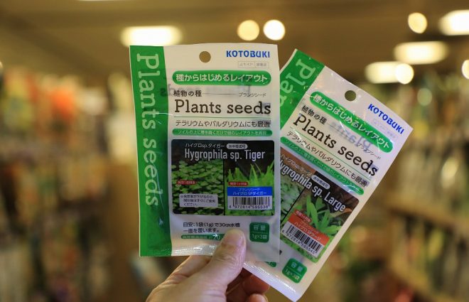 パッケージは小さいものの、ここから広がる世界は無限に広がっています。「コケリウムやテラリウムが注目されていますが、水槽で1粒のタネから育てていくのも楽しいものですよ」。水中葉に育成していくのは少しコツが必要ですが、「水上葉ならさほど難しくはありません」。そんなアピールが功を奏したのか、今年は特に好調だったのだとか。混じりものが一切ない純度100%のハイグロsp.タイガーとハイグロsp.ラージの2種類。芝生一面のような水槽美を、ぜひみなさんにも。