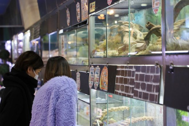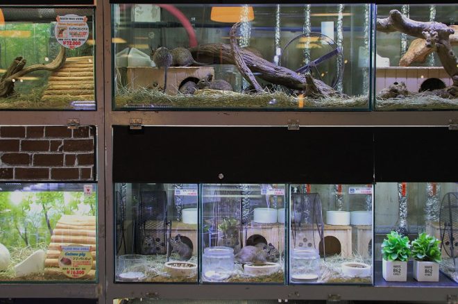 このゾーンはまさに小動物パラダイス。水槽のような店内ディスプレイのため、中の様子がよくわかります。