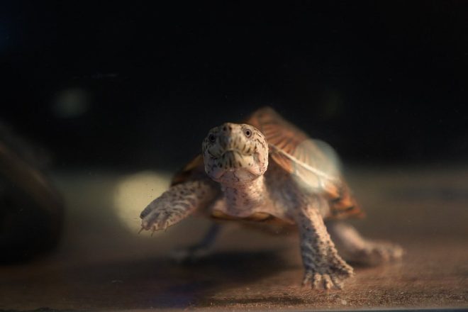アクアテラリウムというと魚メインのイメージがありますが、水に入ったり出たりする生体の動きを見ていると、まるで日本のどこかの森林のよう。時間の経つのも忘れて、しばし見入ってしまいました。