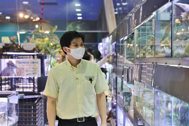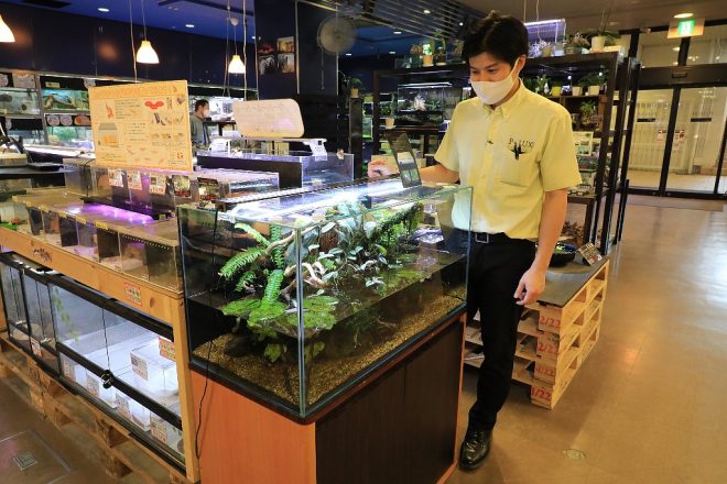 アクアだけではありません。小動物や爬虫類などの取り扱いも多岐に渡っていることから、平日でも女子やカップルの姿が多々。日曜日にもなると、お客さんはさらに増加。アオメキバタンやルリコンゴウインコやポットベリーの鳴き声も聞こえてくる店内は、すっかり動物園化しているのだそう。