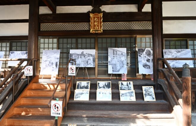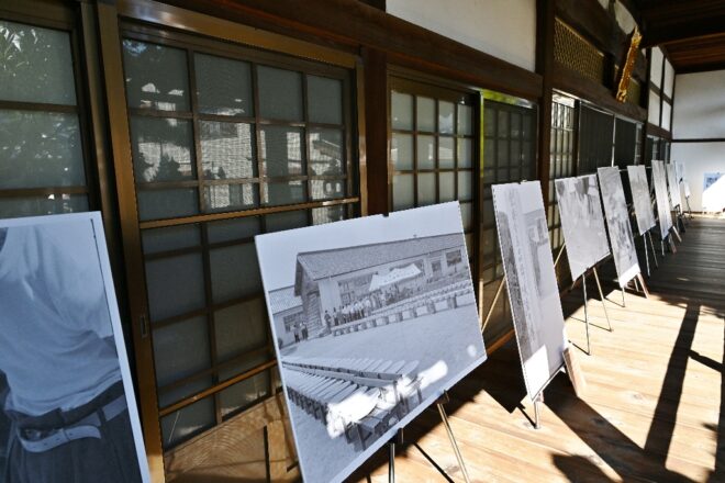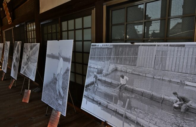 境内に並んでいたのは、モノクロ写真のパネルの数々。ノスタルジックな昭和の原風景が、特大パネルの写真に展開されていました。