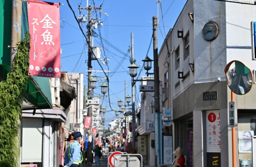 大和郡山市のメインストリートともいうべきここ柳町商店街では、毎年秋に開催される恒例の人気イベント「金魚ストリート祭り2024」が開催されております。同イベントは、柳町商店街を使って屋台や物販だけでなくアクアにちなんだイベントなども行われ、この日だけは車もシャットアウト。文字通り市民と商店街が一体となって秋の1日を楽しもうという趣向です。
